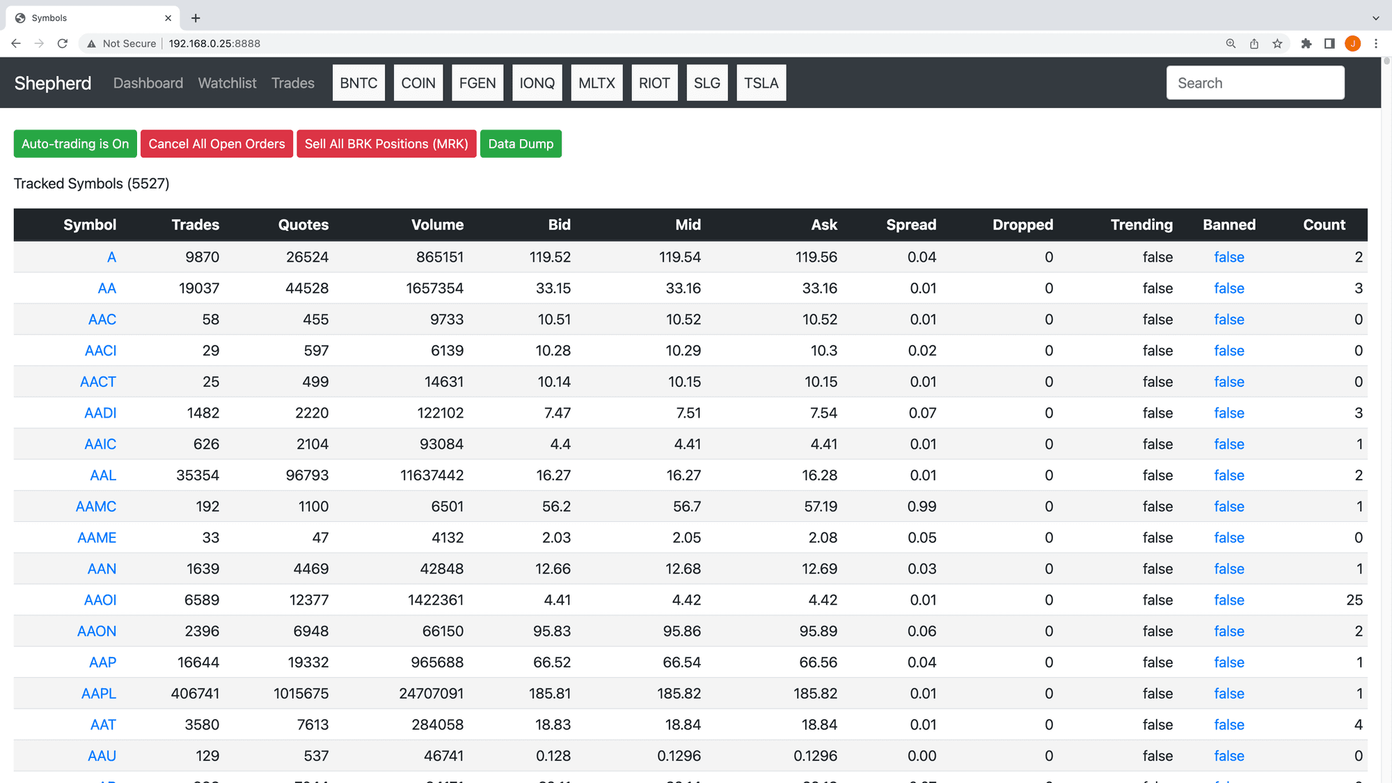 This is an overview of all 5500+ tickers, complete with their prices, spread, and other relevant data.