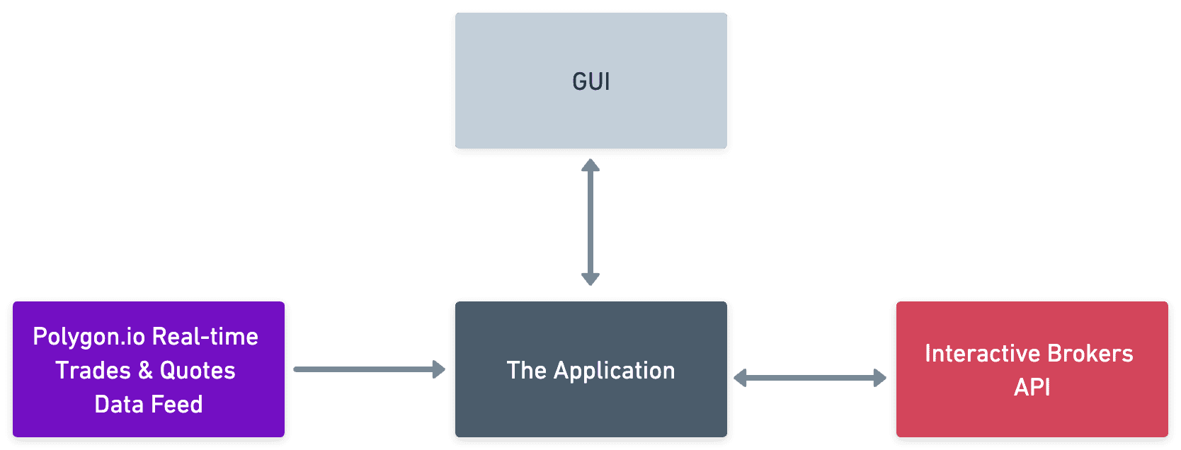 • The Application: This Go app is basically the heart of the solution. It ingests and interprets the data feeds, makes calculated trading decisions, and translates these decisions into buy and sell orders. These orders are then sent to the broker API for execution. We will dive deeper into the specifics of the application in the following section.