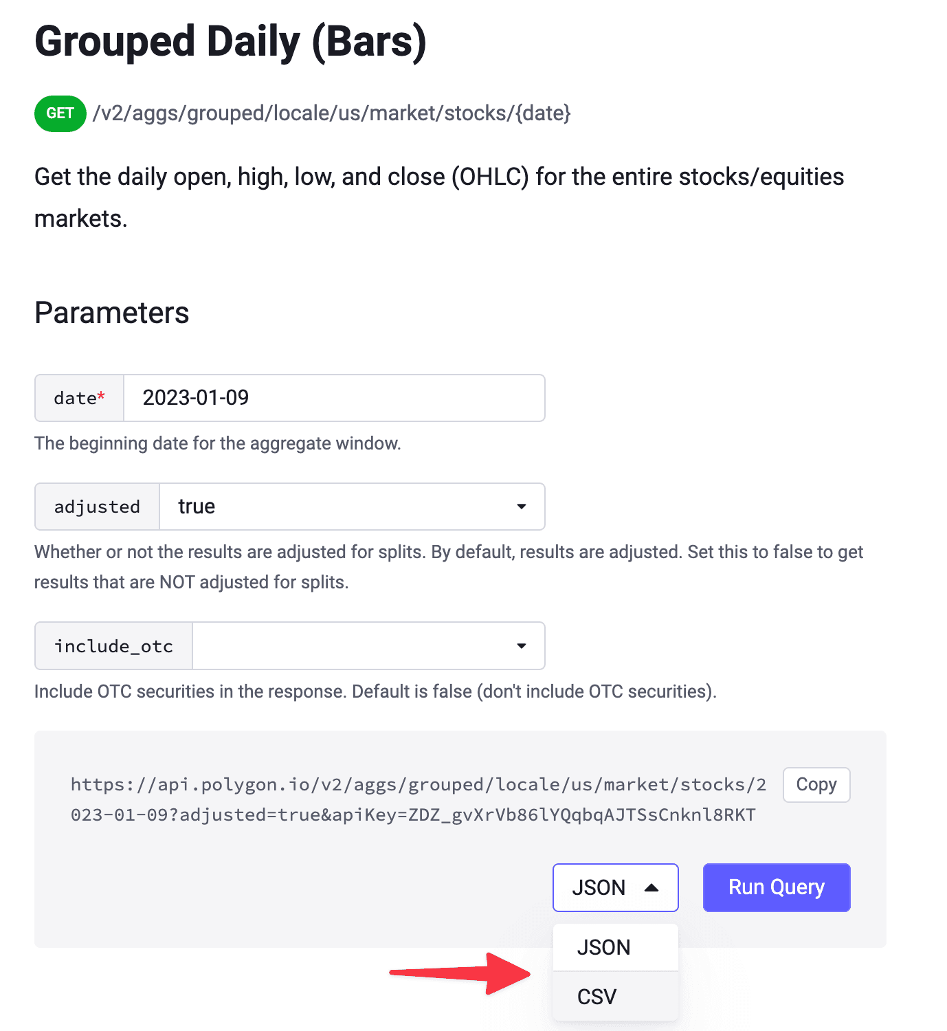 We are excited to announce the launch of CSV support for our REST APIs. You can now choose between JSON and CSV formats when making requests to our platform for Stocks, Options, Forex, and Crypto market data. With the addition of CSV support, you no longer need to transform or convert the data manually, which makes working with financial data more accessible. In this blog, we will walk you through the new feature, provide examples, as well as links to our docs for reference.